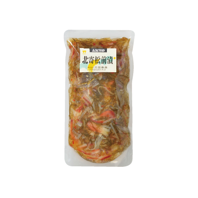 カナダホッキガイヒモ(カナダ)、数の子(デンマーク)、しょうゆ、砂糖、発酵調味料(ブドウ糖、酒精、米、食塩、米麹)、いか加工品(いか、砂糖、食塩)、こんぶ、食塩、アミノ酸液、還元水あめ、かつお節エキス調整品、唐辛子/ソルビット、調味料(アミノ酸等)、pH調整剤、増粘多糖類、酒精、(一部に小麦・いか・大豆を含む)