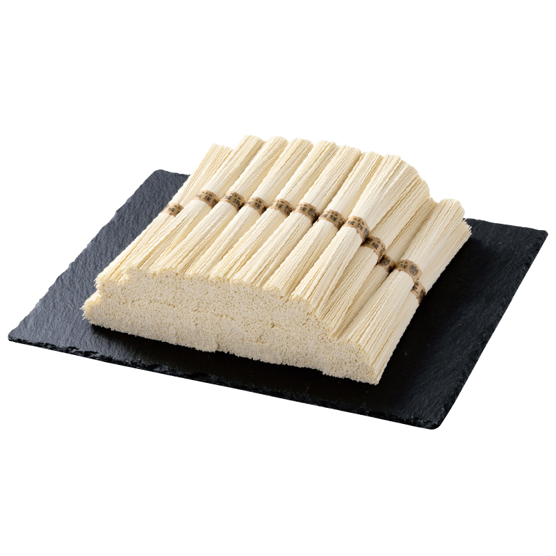 およそ600年受け継がれる伝統の手延べ製法で、幾度も熟成を重ねながら、職人が丹精込めて作り上げた播州地方の名品です。