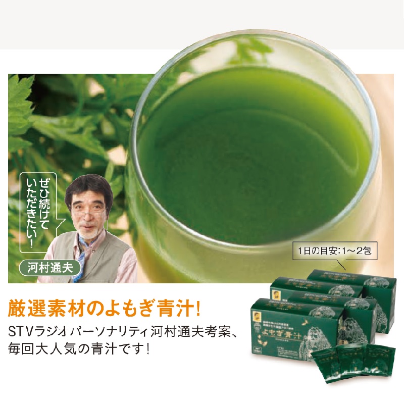 こだわりの国産主原料をギュッ!!と凝縮した、とても飲み易い「よもぎ青汁」。