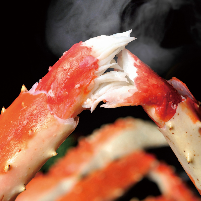 ・カニの王様タラバガニの中でも、姿で2kg以上の大型のタラバガニをボイル加工して、甲羅を外して脚部だけを急速冷凍しました(お届けは1肩約800gです)。