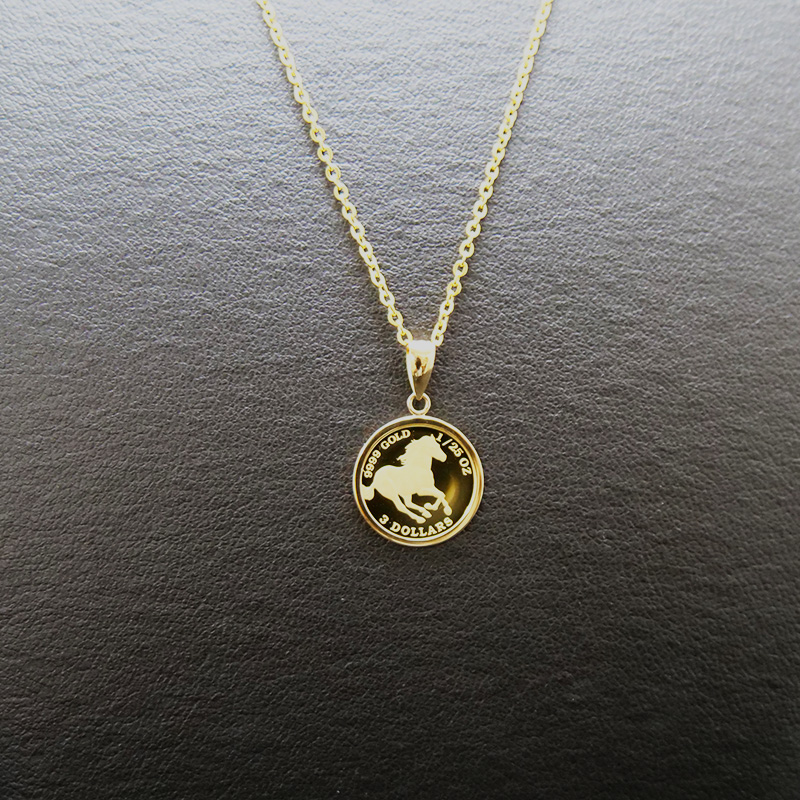 今回は、純金ツバルホースコインを18金のペンダント枠とチェーンで素敵なコインペンダントに仕上げました!
