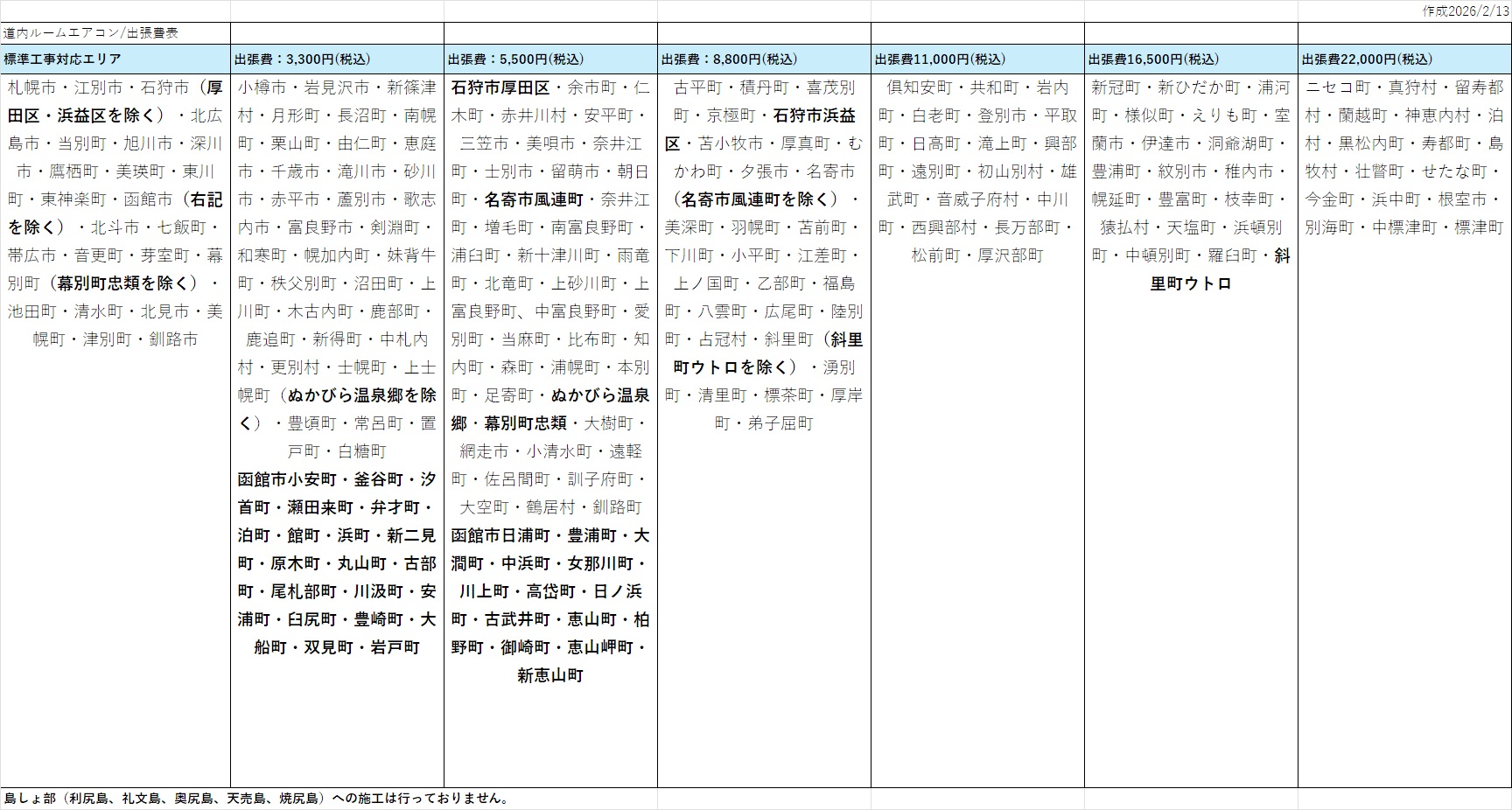 標準工事費と送料が無料!!(6畳用の場合、標準工事費16,500円、送料5,500円)。